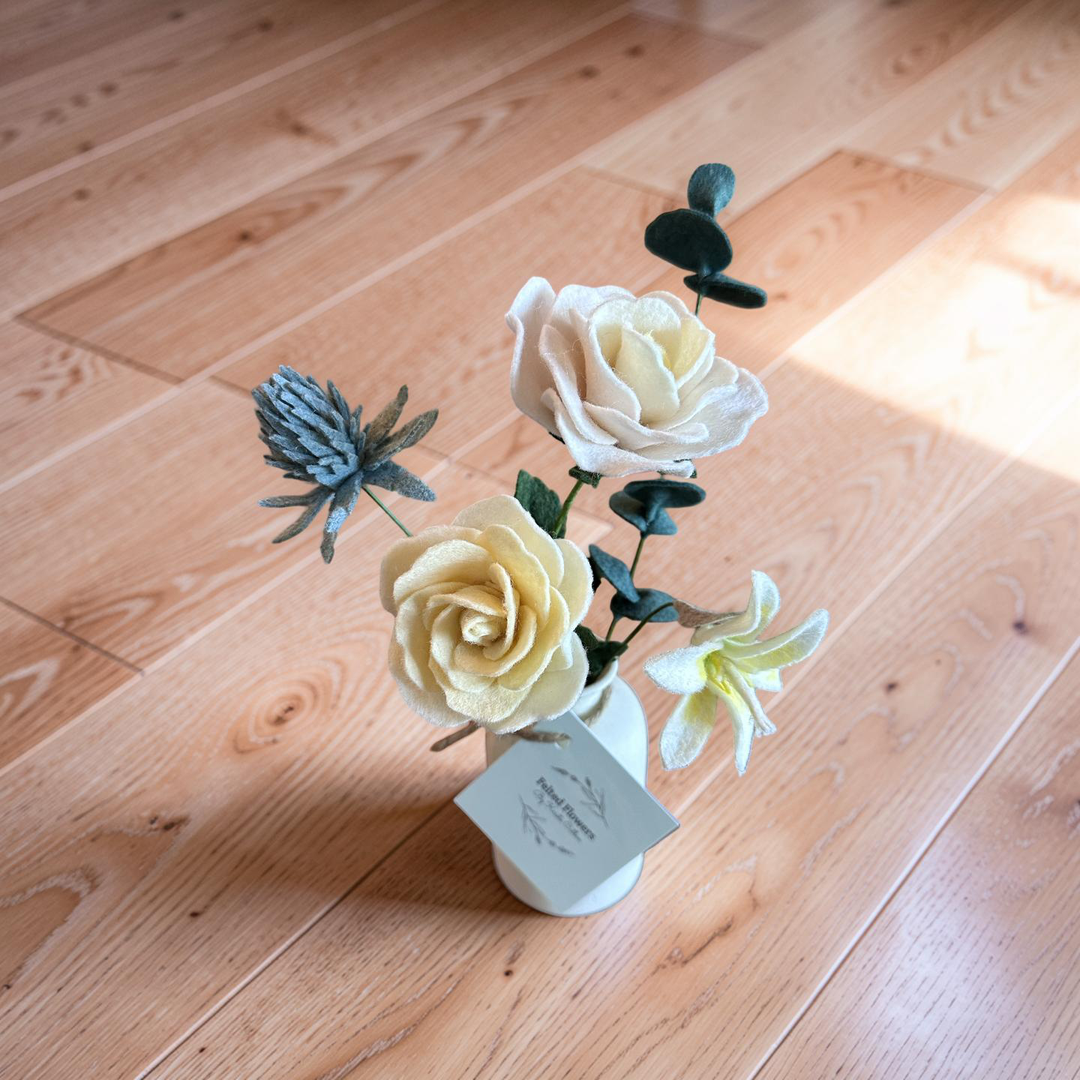 Condolence Bouquet of Cream Roses, Eucalyptus, Thistle and Lily’s