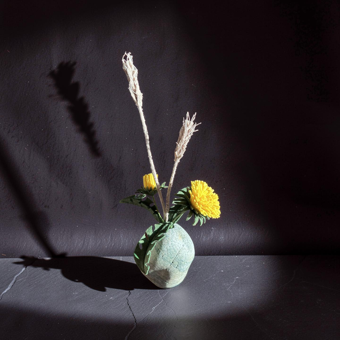 Dandelions and Wheat in a Rock Vase