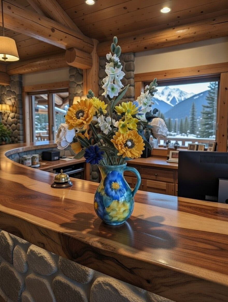 Through the ancient art of wool felting, each petal and stem is lovingly shaped by hand, preserving the fleeting beauty of fresh flowers in a durable, tactile form. Bathed in natural light against a backdrop of evergreens and cozy textures, this piece brings warmth, color, and perpetual springtime serenity to any space
